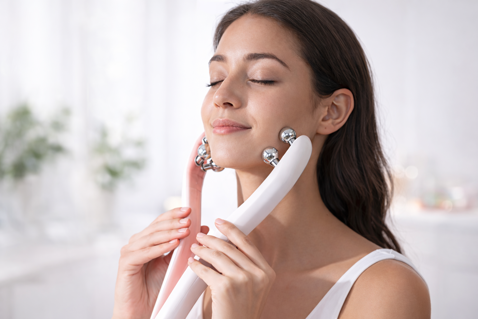 The dual 3D rollers glide effortlessly across the face and neck, delivering a soothing massage that helps contour and refresh your skin.
